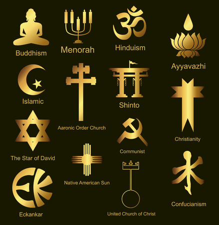金色の世界宗教の象徴。主要な宗教団体や宗教の兆候。キリスト教、イスラム教、ヒンドゥー教、仏教、道教、神道、シク教、ユダヤ教の分離型ベクターイラスト。」のベクター画像素材 ロイヤリティフリー1021920637Shutterstock。