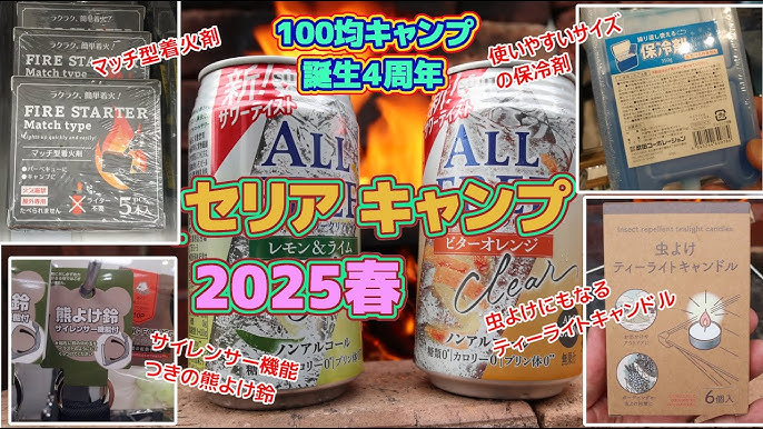 セリアキャンプ新商品 マッチ型着火剤 ファイヤーライターズ代用品!?・燃焼時間検証・サイレンサー機能付き熊よけ鈴・保冷剤350g・FireStartar・ファイアースターターマッチタイプ・2025春。