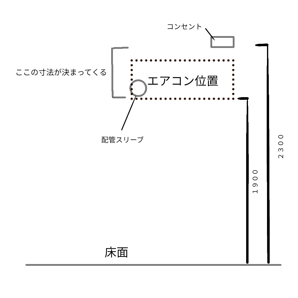 エアコン設置とコンセントの位置-ロのジノイエ。