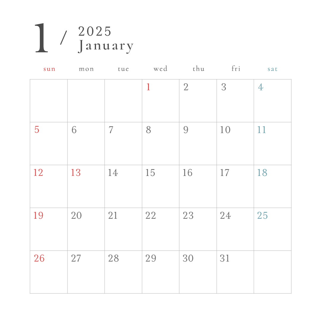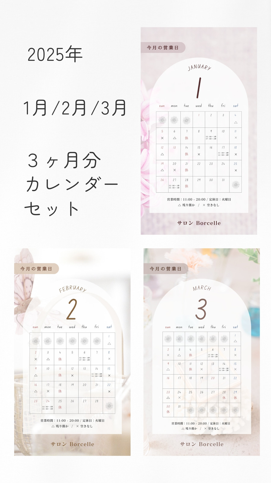 2025年 インスタ用おしゃれな営業日カレンダー画像*ダウンロード無料!4種類あり♡ - コトノハデザインブログ。