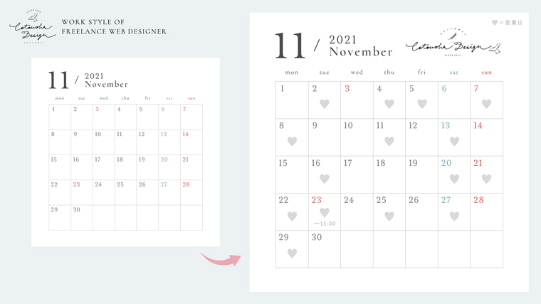 2021年 インスタ用おしゃれな営業日カレンダー画像*ダウンロード無料! - コトノハデザインブログ。