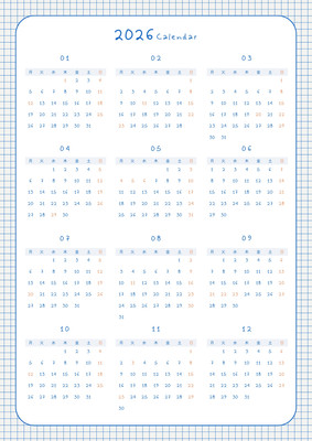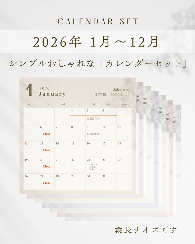 カレンダー インスタ・印刷・営業日カレンダー2026年迄 - Shioナチュラルおしゃれなテンプレート - Canva。