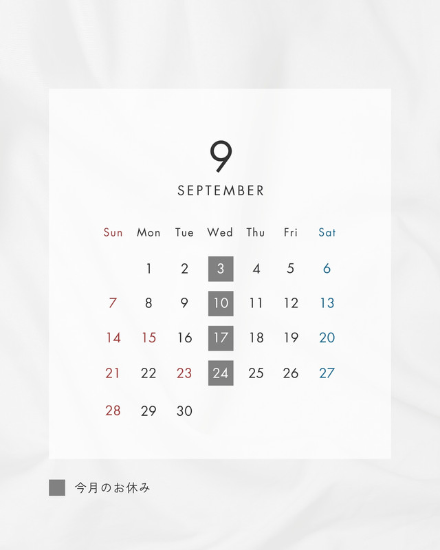 9月 営業日カレンダー🗓️』 9月のお休みは上記のようになっておりますので、 よろしくお願いします!!おしゃれの店wan雑貨。