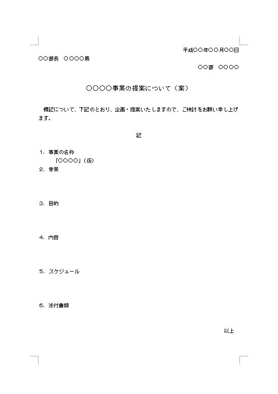 提案書 新規事業 の書式テンプレート Word・ワードテンプレート・フリーBiz。
