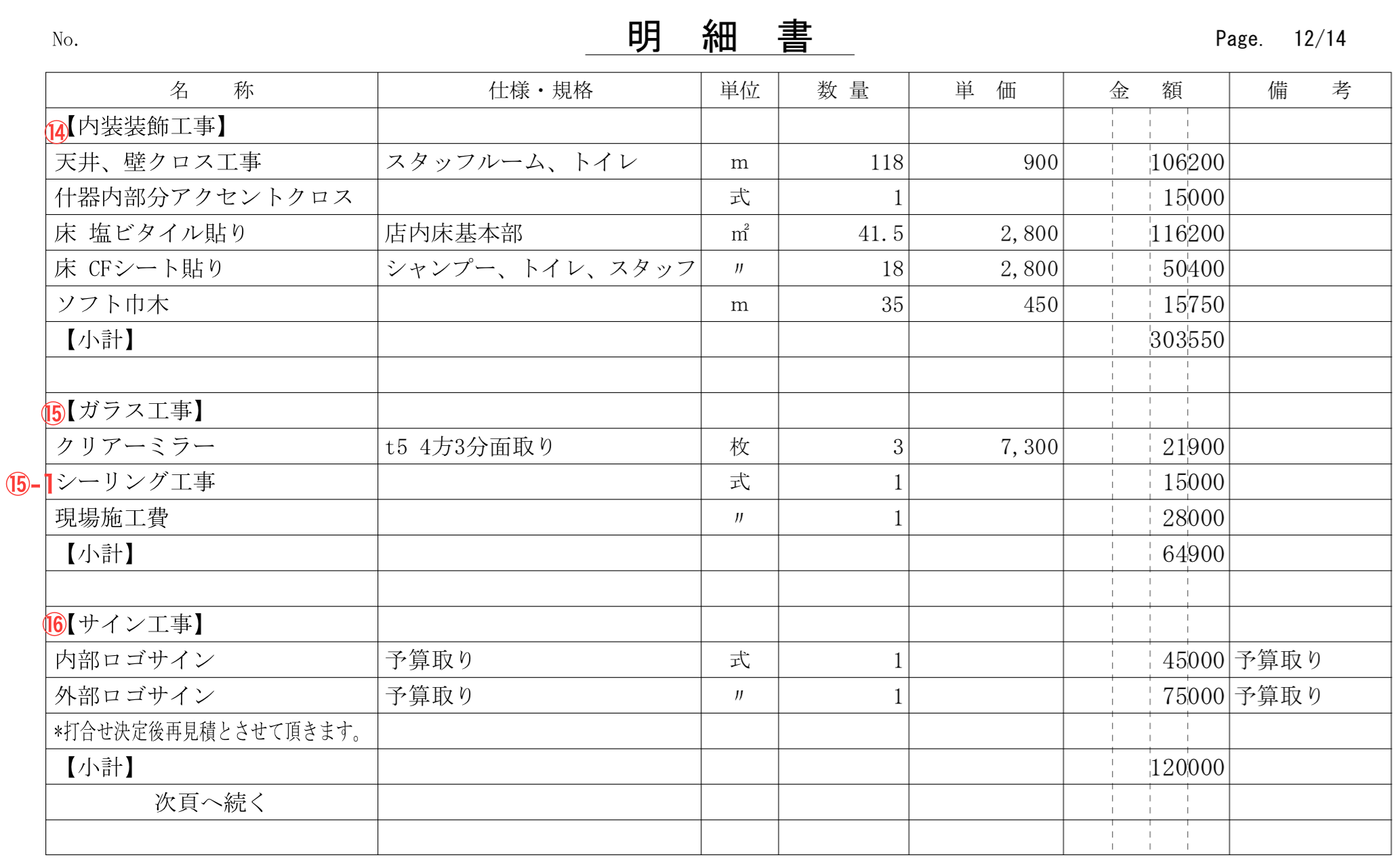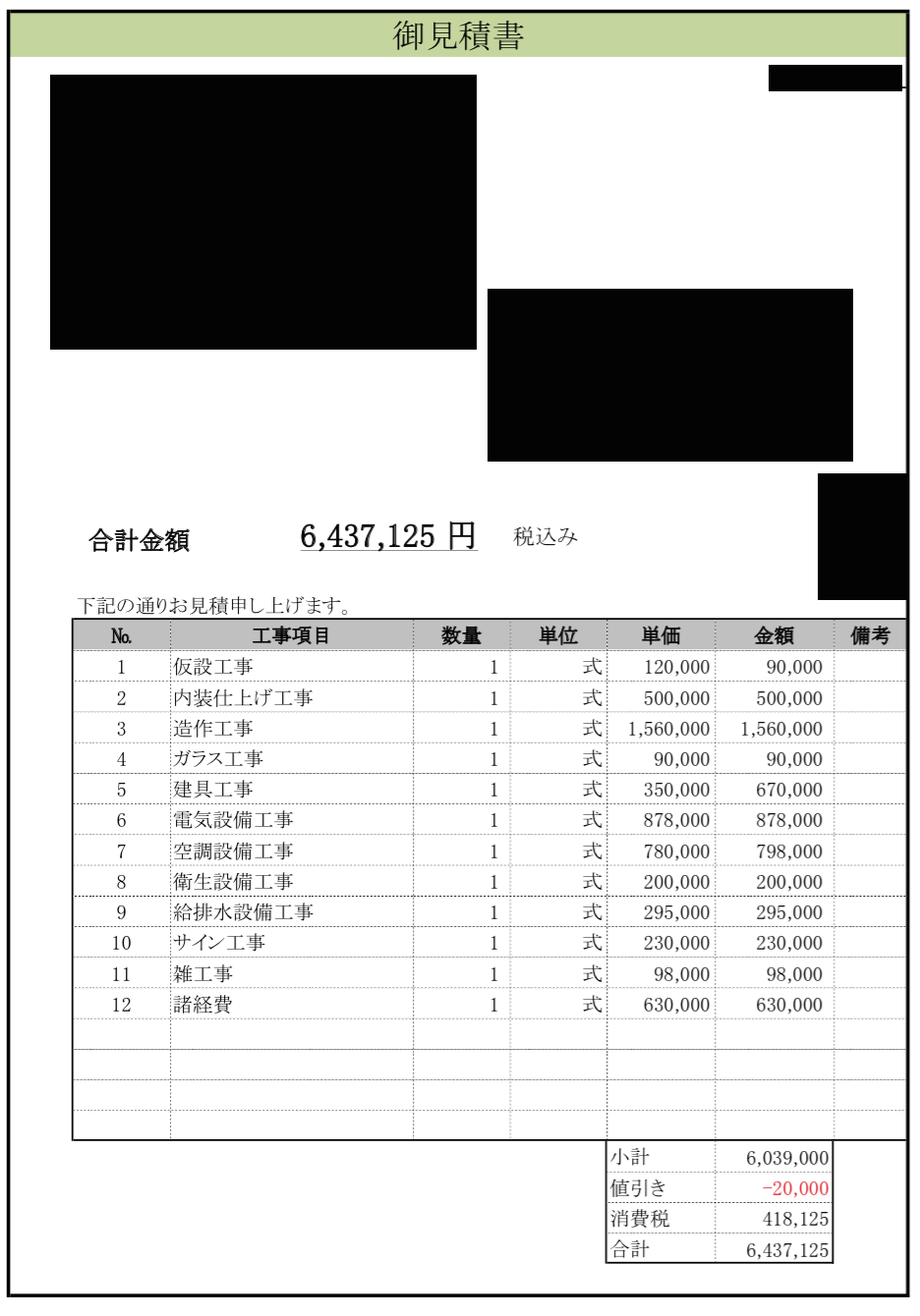 内装工事の見積書の見方を公開 新規店舗開業オーナー向け内装工事、店舗デザイン・設計の見積もり依頼・比較 アーキクラウド。