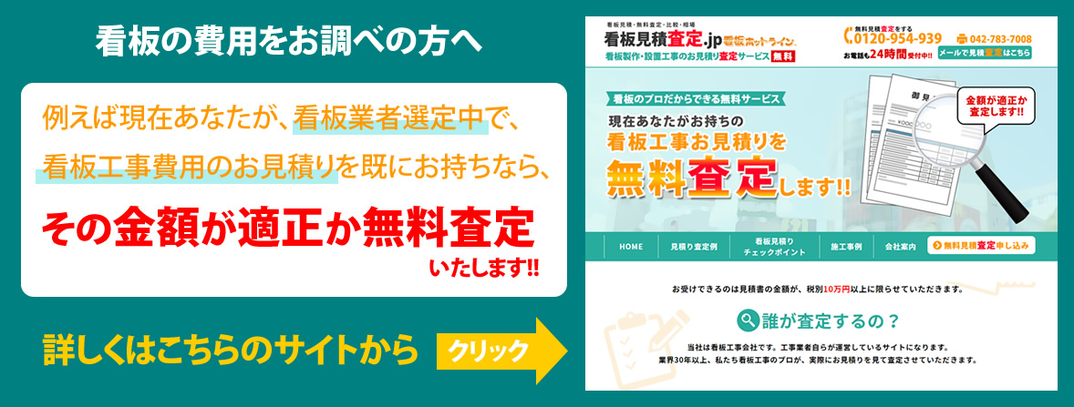 看板の費用・料金看板製作・設置・撤去・デザインなら看板ホットライン。