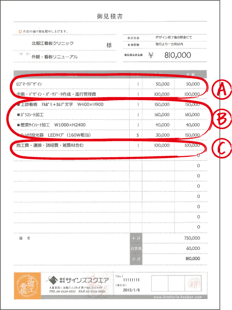 看板の価格はいくら?工事費用、製作の値段、デザインの料金トータルで見積もりします北堀江看板BLOG。