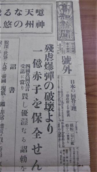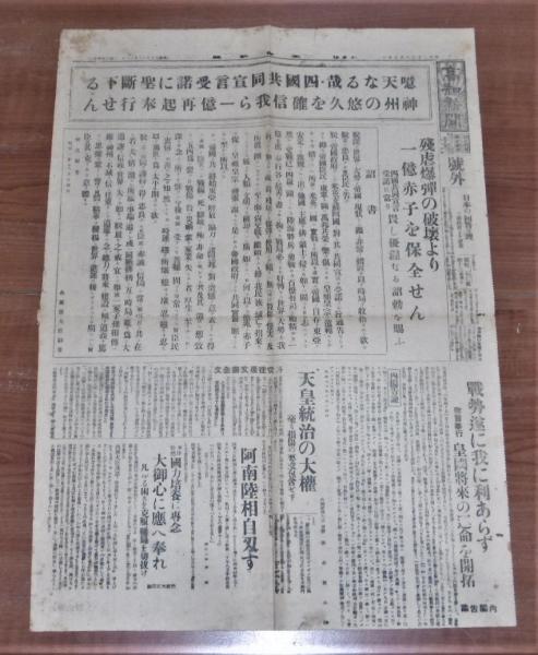 昭和20年8月15日 号外・高知新聞 『四國共同宣言 ポツダム宣言 受諾 残虐爆弾 原爆ソ連政府日本の回答受理 特攻機の攻撃 阿南陸相自刃す 他』ぶっくいん高知 古書部古本、中古本、古書籍の通販は「日本の古本屋」日本の古本屋。