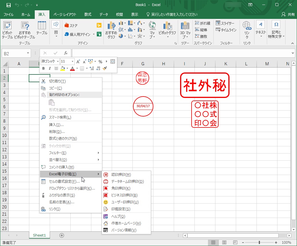 Excel電子印鑑」Excelのシートにさまざまな判子を押せるアドイン - 窓の杜。