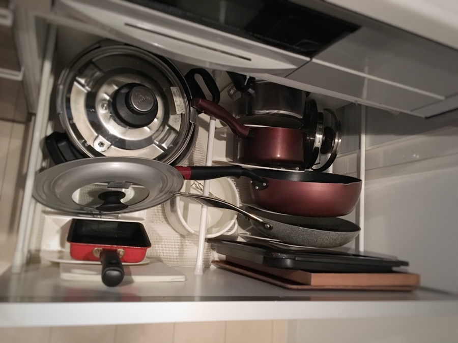 フライパン取り出しにくい 問題、ダイソーの「優秀ラック」で解決しちゃった。