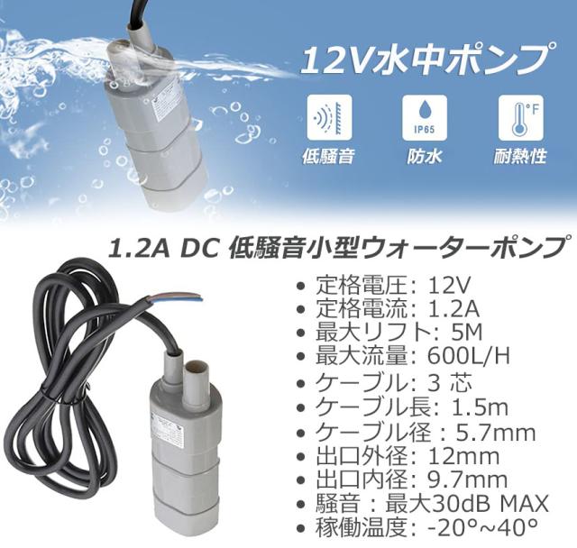 水中ポンプ12v 海水 小型 水道水 地下水 排水ポンプ 循環ポンプ 汲み上げ 水ポンプ 給水ポンプ 家庭用 散水ポンプ ポンプ 流量 600LH 水槽 揚程5m 水槽 噴水。