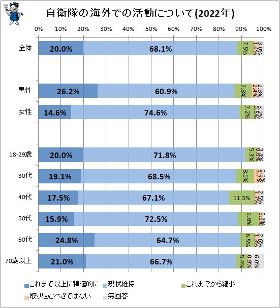 自衛隊の海外での取り組み、現状維持を望む人は7割近く、より積極的には2割 不破雷蔵- エキスパート - Yahoo!ニュース。