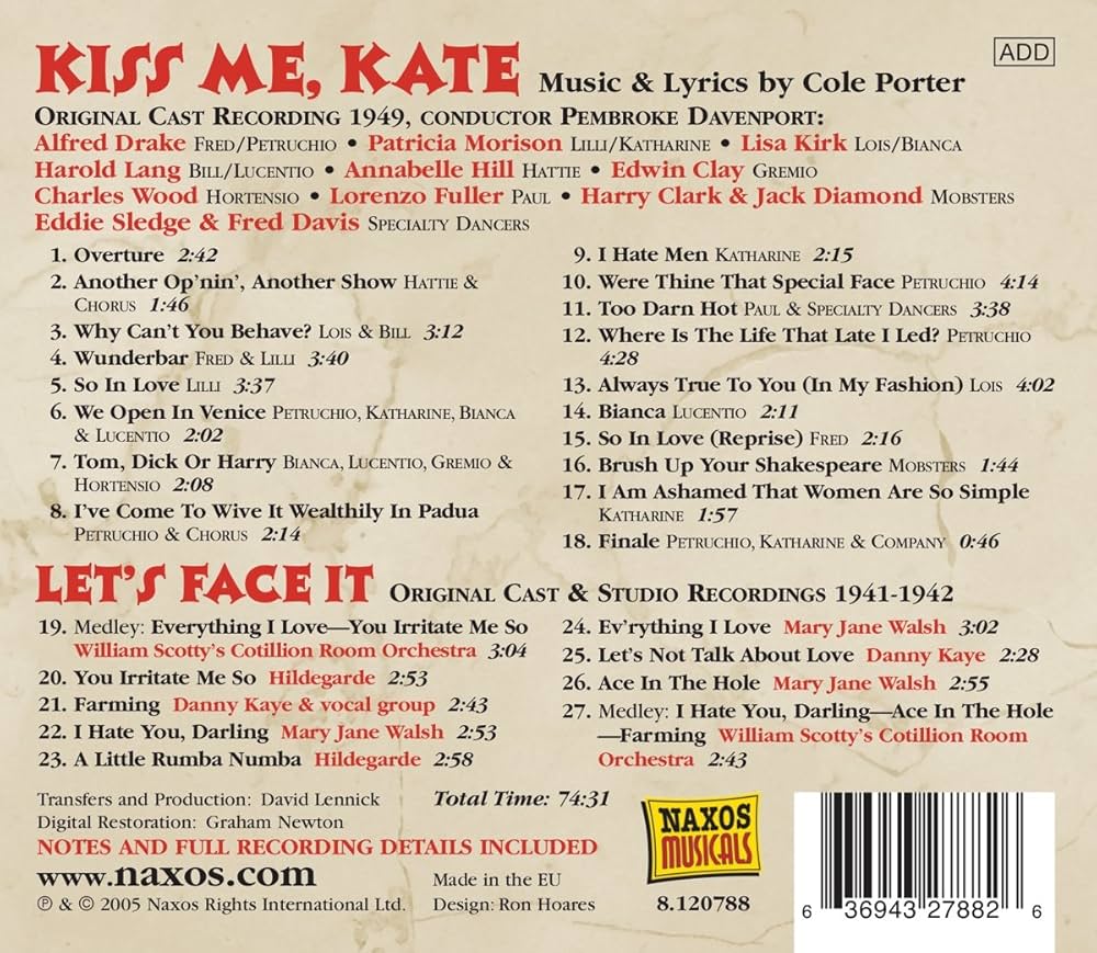 Amazon.co.jp: ミュージカル「キス・ミー・ケイト」・「レッツ・フェイス・イット」 1949 : ミュージック。