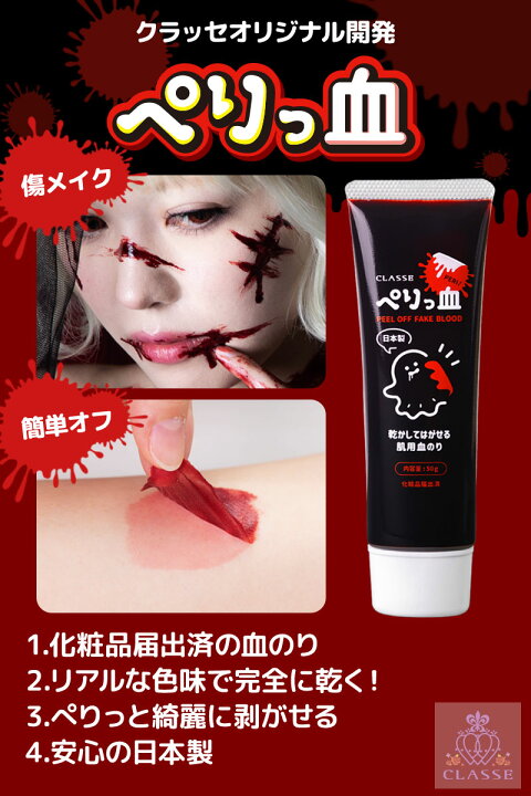 楽天市場 血のり 乾かしてはがせる肌用血のり コスプレ ぺりっ血 血糊 傷メイク ピールオフ 固まる ゾンビメイク ハロウィン ハロウィーンHalloween 仮装 舞台 特殊メイク べたつかない 化粧品登録済 日本製 クラッセ : CLASSEエティア公式直販店クラッセ。