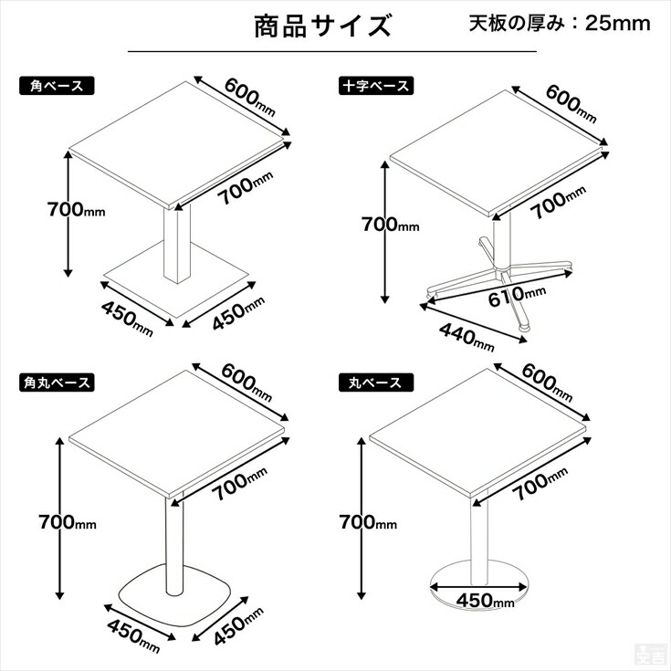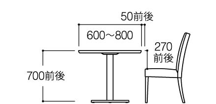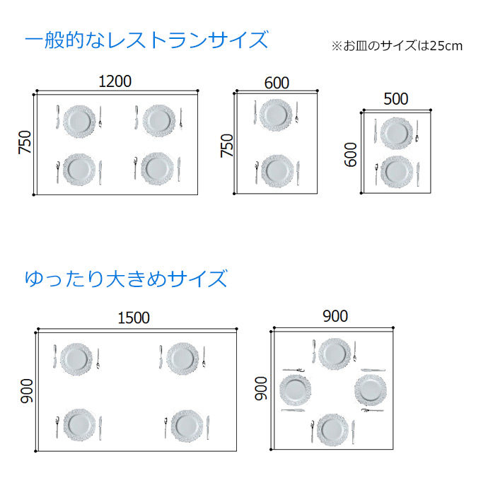 レストランテーブル 寸法・サイズ - ピースワーク。