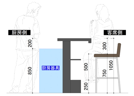 カウンター席の標準寸法は?成功するカウンター席の寸法設計の秘訣 - カグポンメディア。