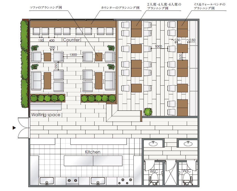 配置計画 カウンター席のレイアウト 店舗用家具 株式会社 関東ファニチャ。
