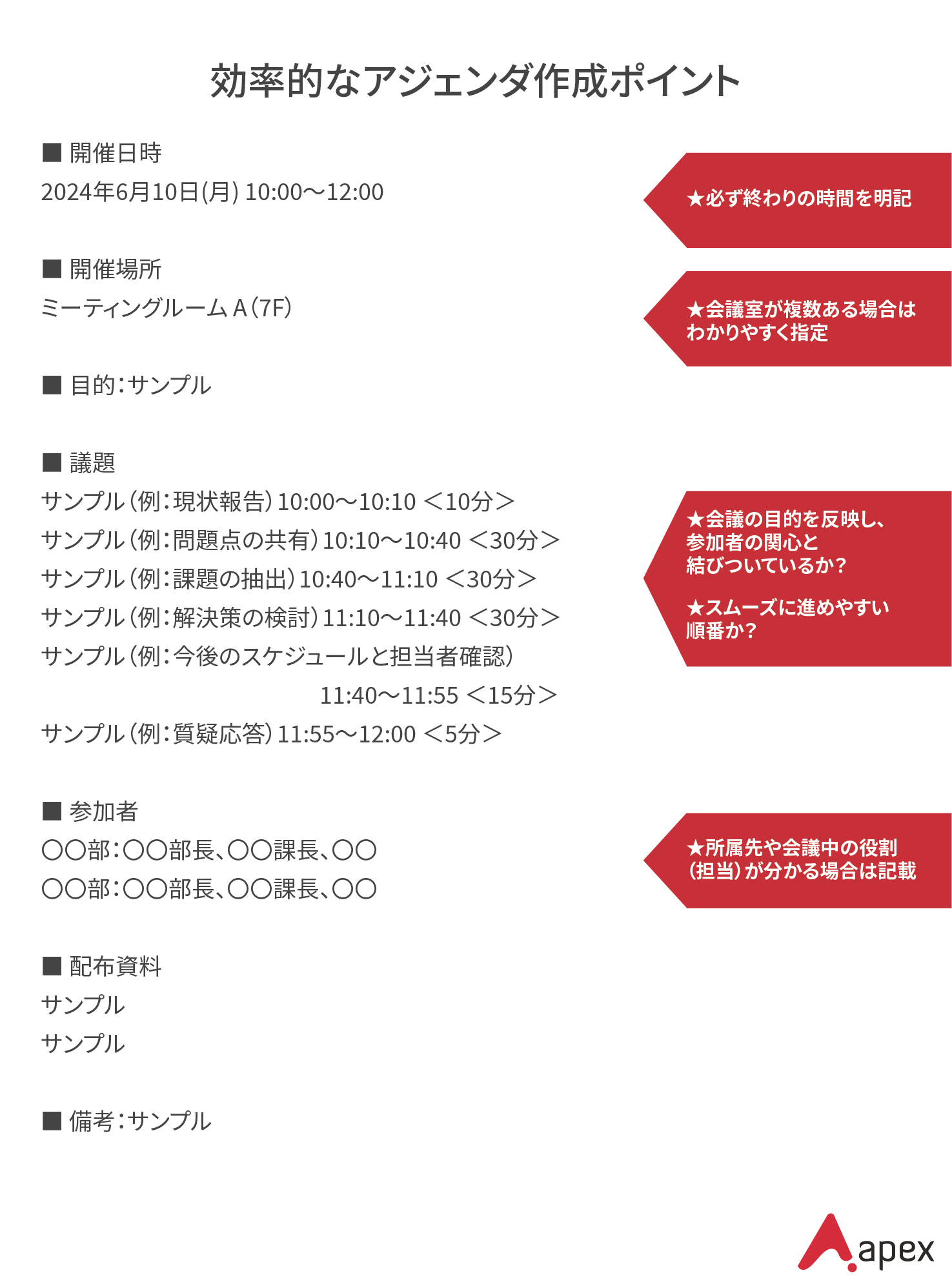 アジェンダとは?会議効率最大化のための作成ガイドとテンプレートApex エイペックス。