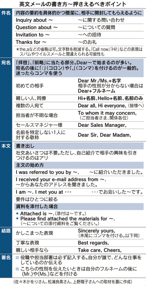 センスは不要 確実に伝わる英文メールの書き方 - 日本経済新聞。