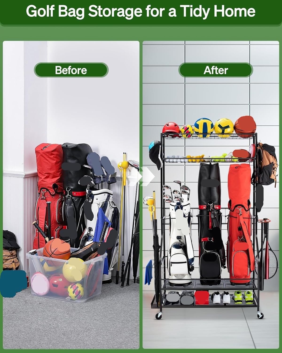 Amazon.co.jp: DAOUTIME ゴルフバッグ ガレージ収納ラック キャスター付き シングルゴルフバッグと用具アクセサリー用オーガナイザー自宅、ガレージ、クラブ、倉庫、地下室に最適 - 頑丈な木材と金属構造ブラック: スポーツ&アウトドア。