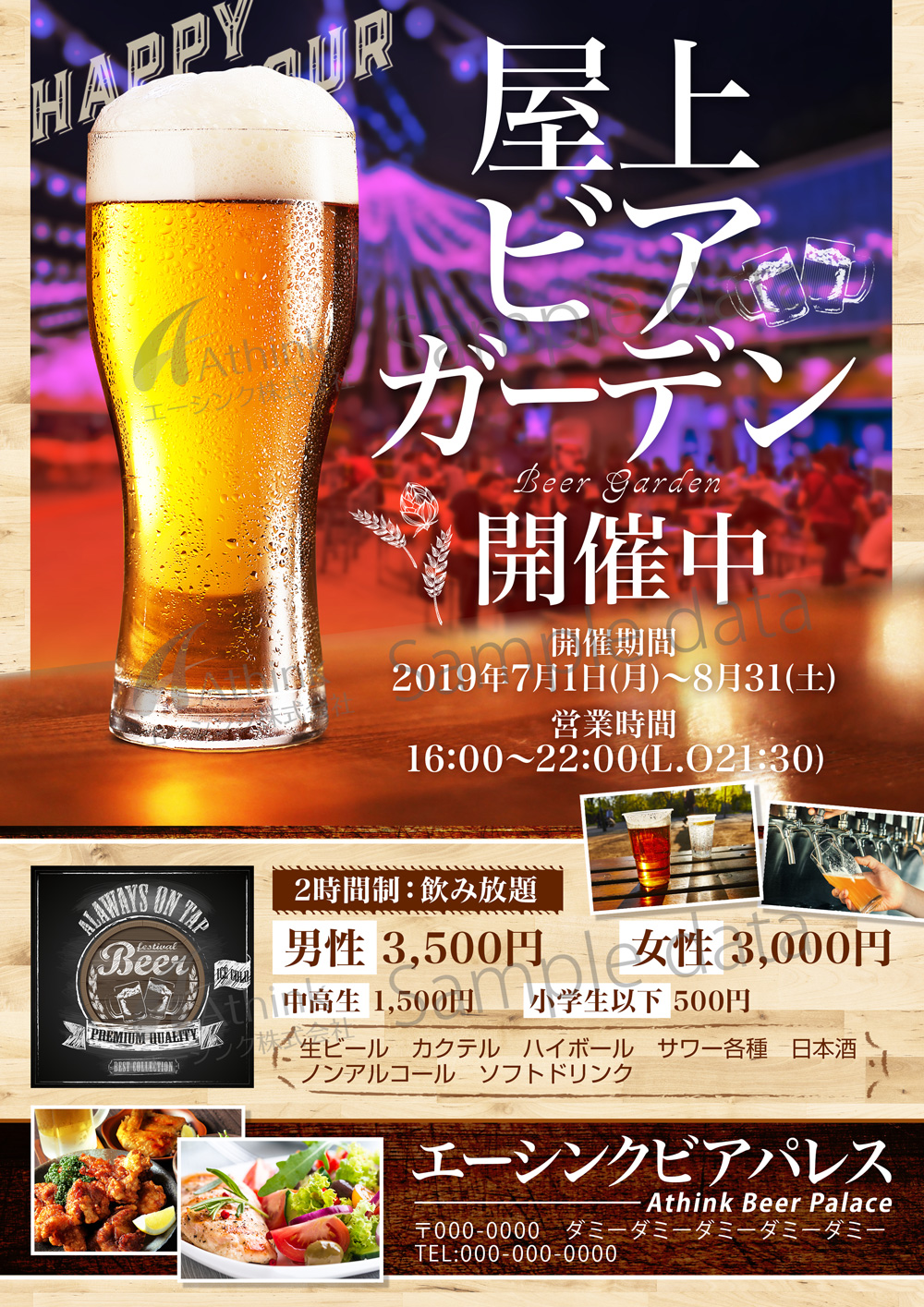 エーシンク株式会社 - Design store飲食店 ビアガーデン開催ポスターデータ A3サイズ。