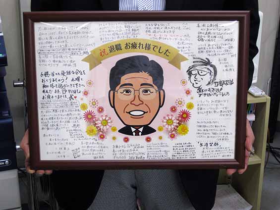 退職祝記念品、栄転祝記念品に似顔絵寄せ書き色紙を贈り物に。
