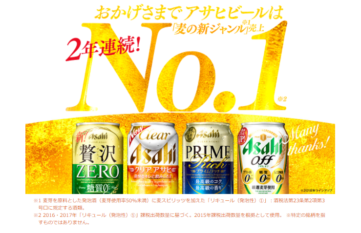 アサヒビールは、おかげさまで「ノンアルコールビールテイスト年間売上No1 * !」アサヒビール株式会社のプレスリリース。