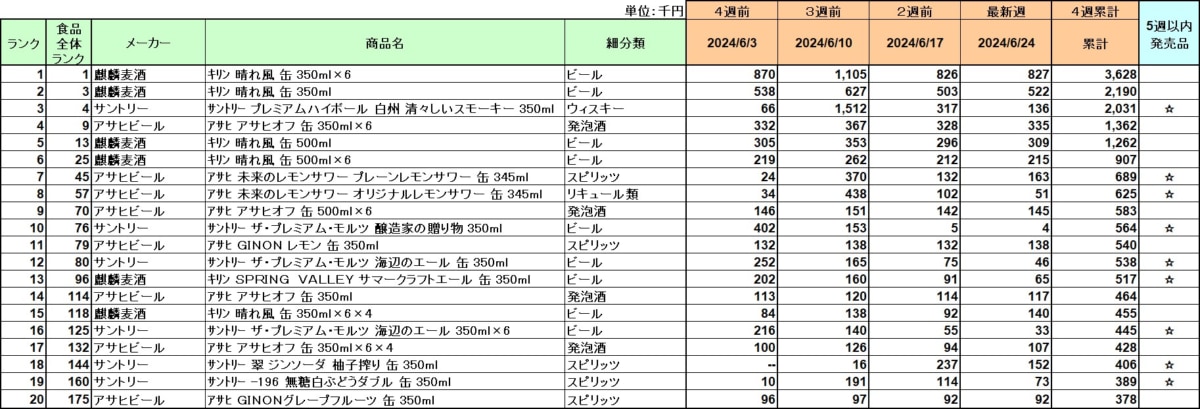 ランキング 売上個数TOP10 ビール部門ランキングビールお酒。