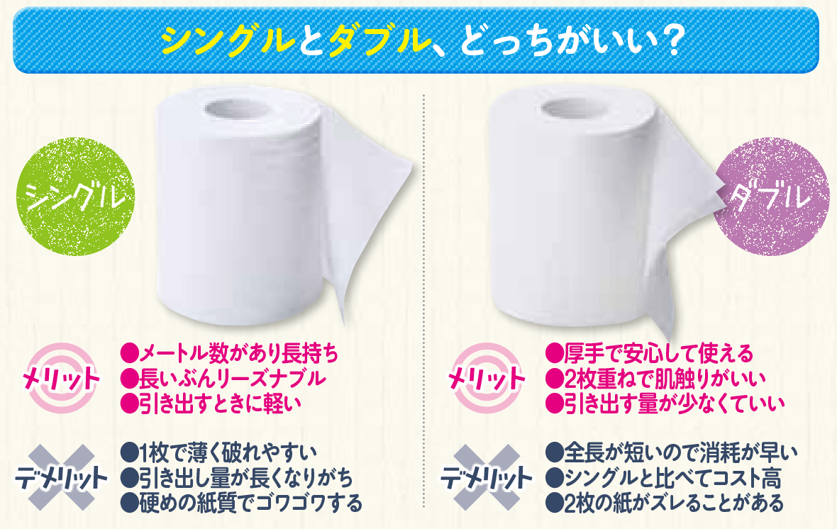 トイレットペーパーはシングルとダブルどっちがいい?それぞれの特徴とメリット・デメリットを解説 – イトマンダイレクト。