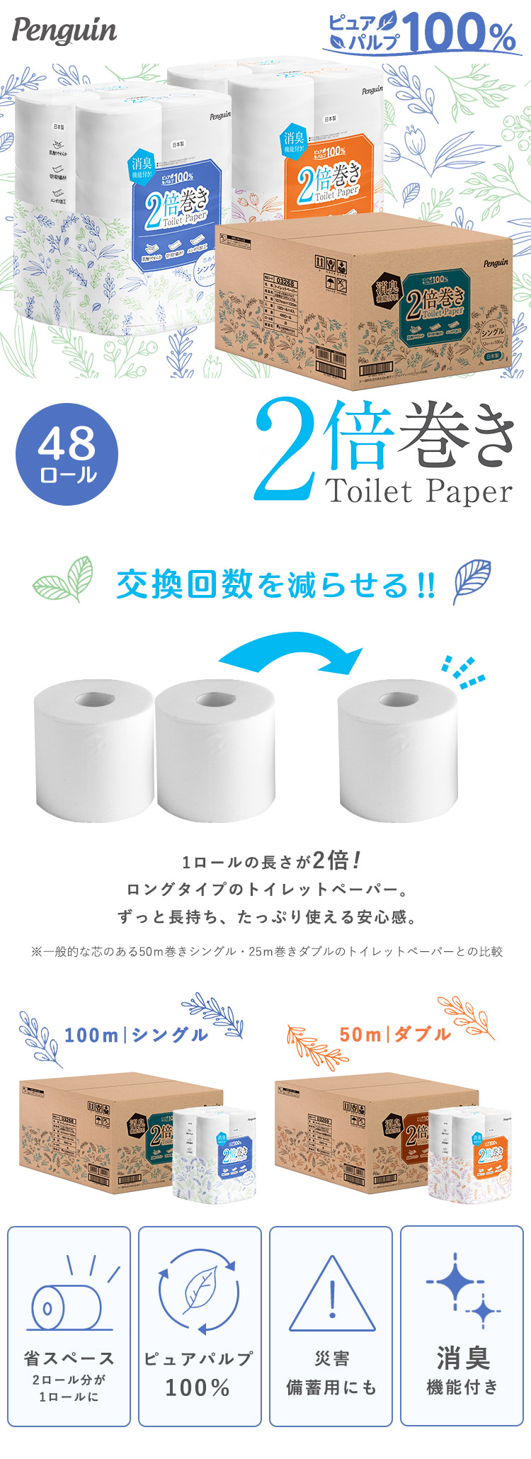 2倍巻きトイレットペーパー シングル 100m ダブル 50m 12ロール 全2種類 トイレットペーパー 2倍巻き ペンギン 丸富製紙 シングル ダブル12ロール トイレットロール 紙 日本製の通販はau PAY マーケット - アイリスプラザ au PAY マーケット店au PAYマーケット-通販。