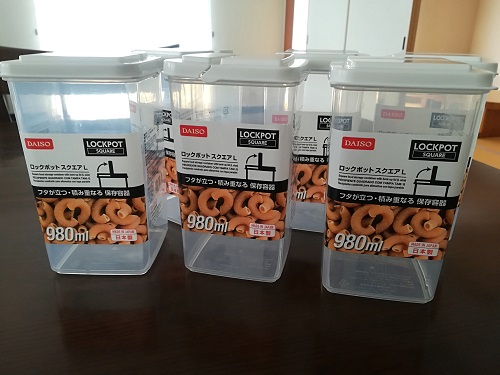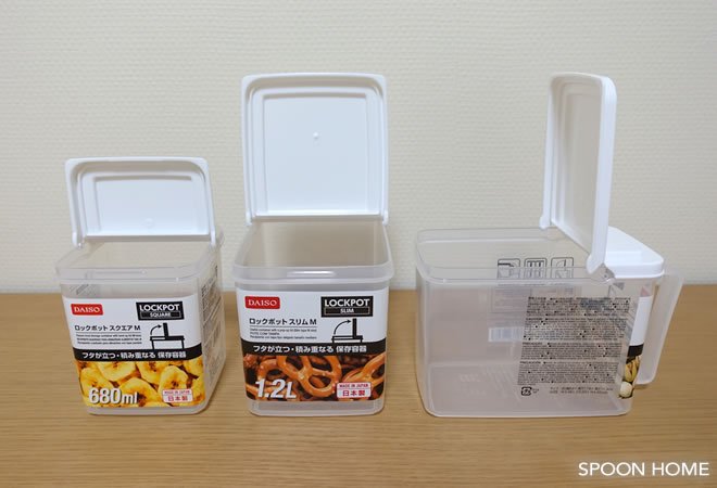 100均ダイソー・ロックポットの種類別サイズ。フタが立つ容器の収納アイデアと使い方 ブログレポート。