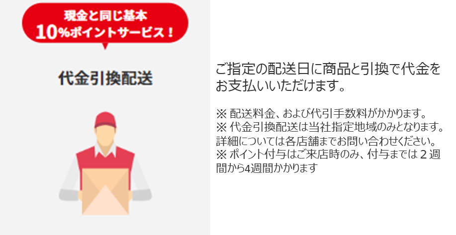 ビックカメラ店舗でお買い物の際にご利用いただけるお支払方法。