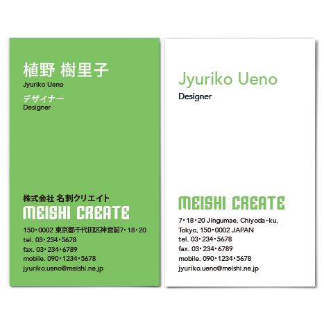 シンプルでおしゃれなデザイン名刺・グリーン名刺クリエイト。