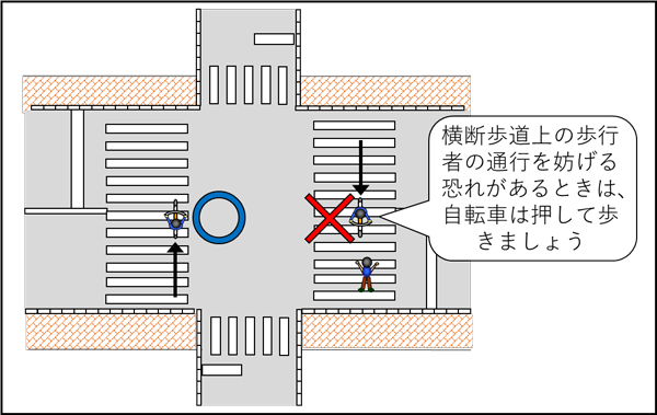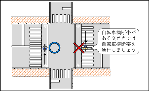 横断歩道や交差点での自転車の通行方法を確認しましょう!:熊谷市ホームページ。