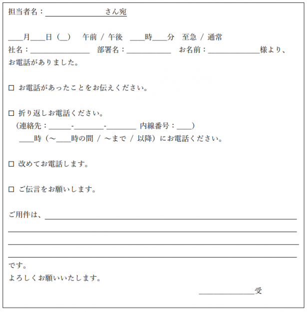電話メモ 電話対応メモのとり方のポイント・テンプレート - 便利・わかりやすい マナーとビジネス知識。