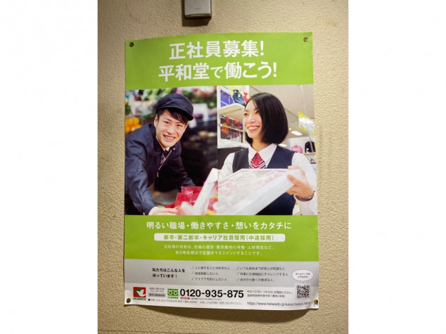 無人販売店に貼られていた求人広告:街中の求人広告分析仕事探しの求人サイトQ-JiN。