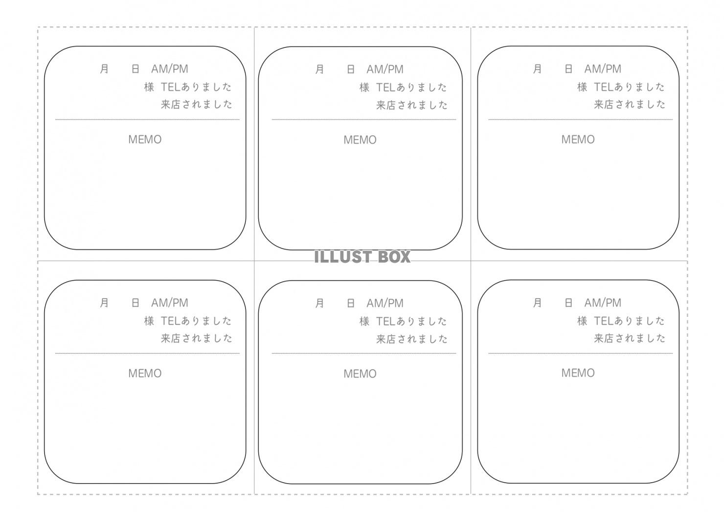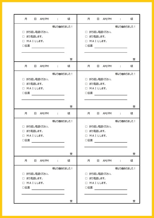 電話メモ・エクセル・ワードの無料テンプレートA4印刷の6分割・6枚セット📑無料ダウンロード!テンプレルン📑無料ダウンロード!テンプレルン。