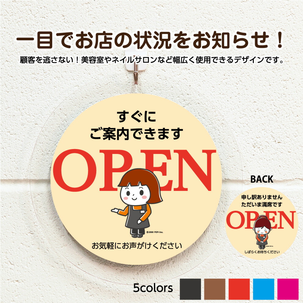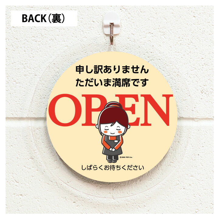 満席です 営業中 看板 プレート すぐにご案内できます おしゃれ オープン かわいい 店舗用 飲食店 美容室 サロン 屋外 案内 ただいま満席ですお待ち下さい シンプル 軽い 丸 防水 アクリルパネル 壁掛け UVカット 直径200mmイヌのかんばんや。