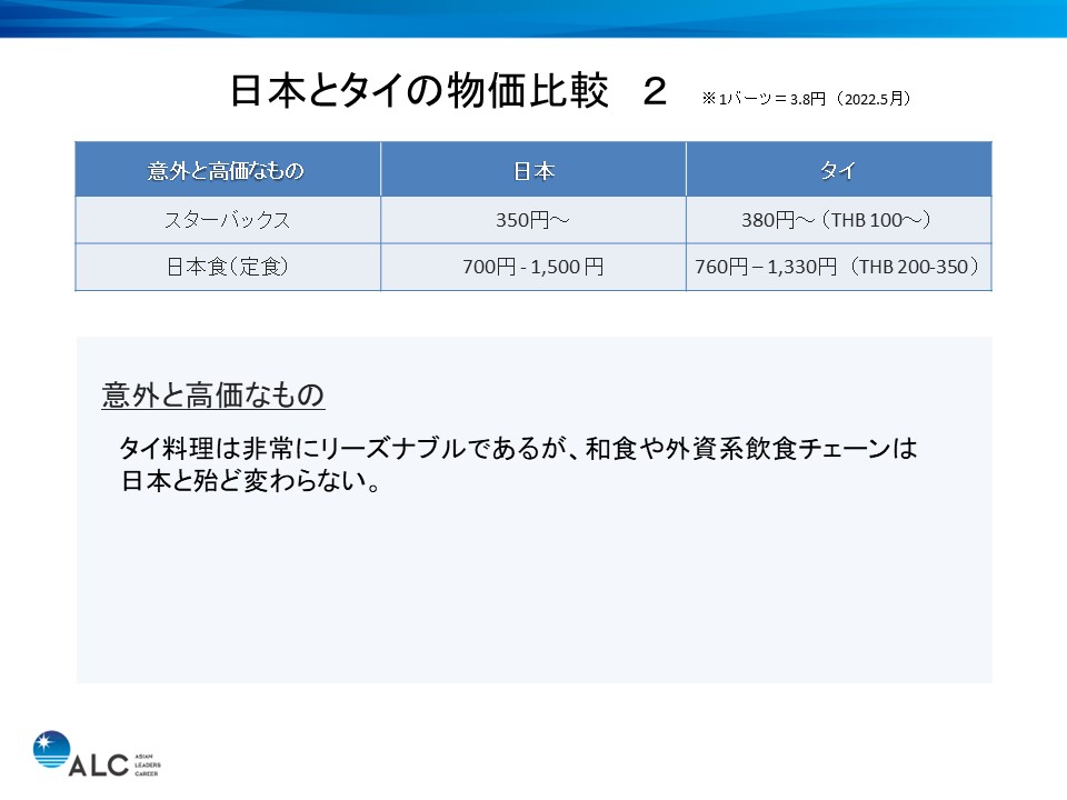 日本とタイの物価比較タイ バンコク で就職・転職!Asian Leaders Career Recruitment。
