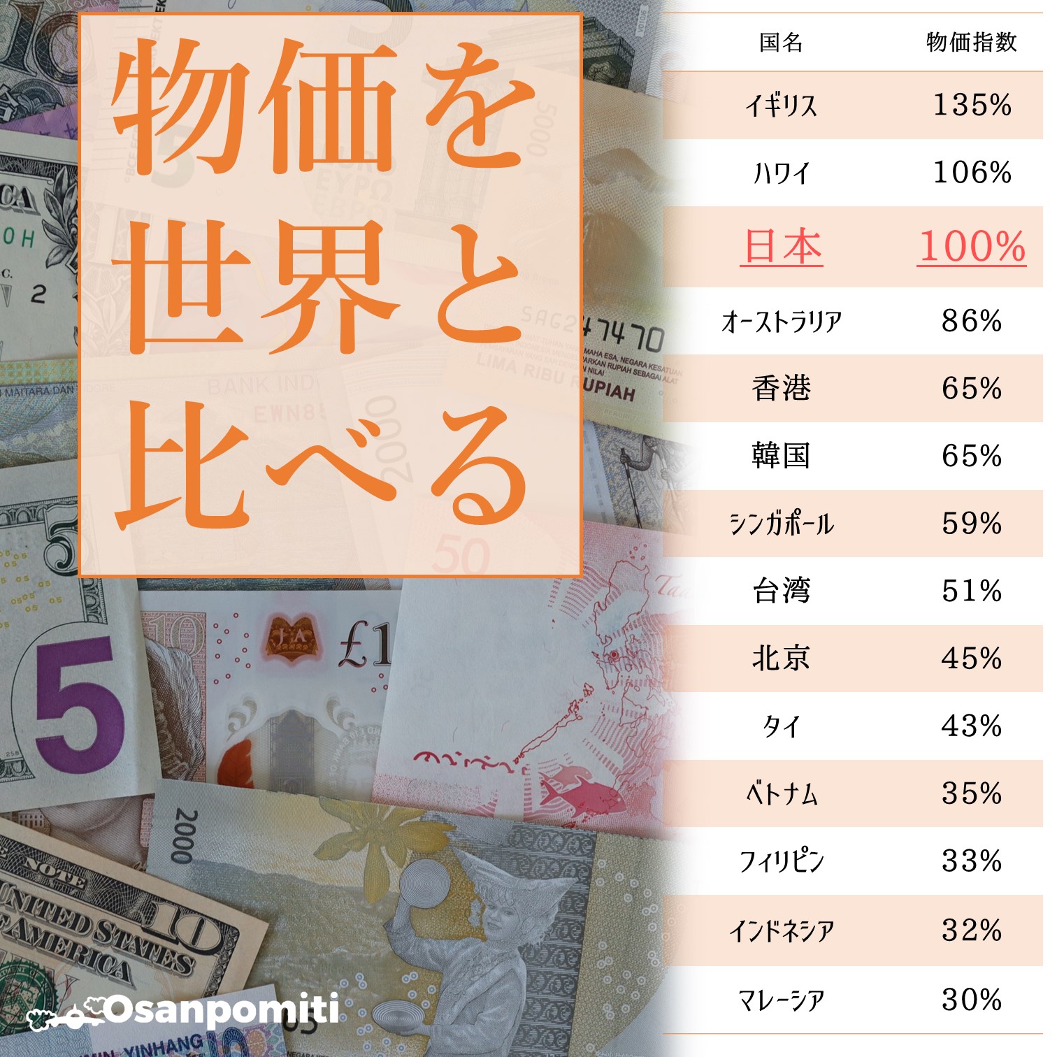 日本の物価って高い?安い?世界13ヵ国といろんな物価を比較してみましたおさんぽみち。