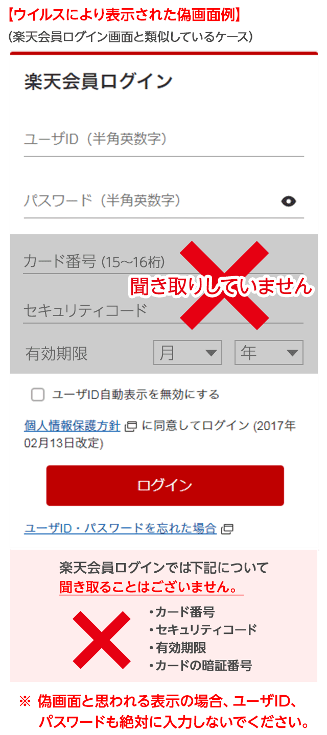 楽天市場 ヘルプ・お問い合わせご注意 楽天を偽装したサイト・メール等。