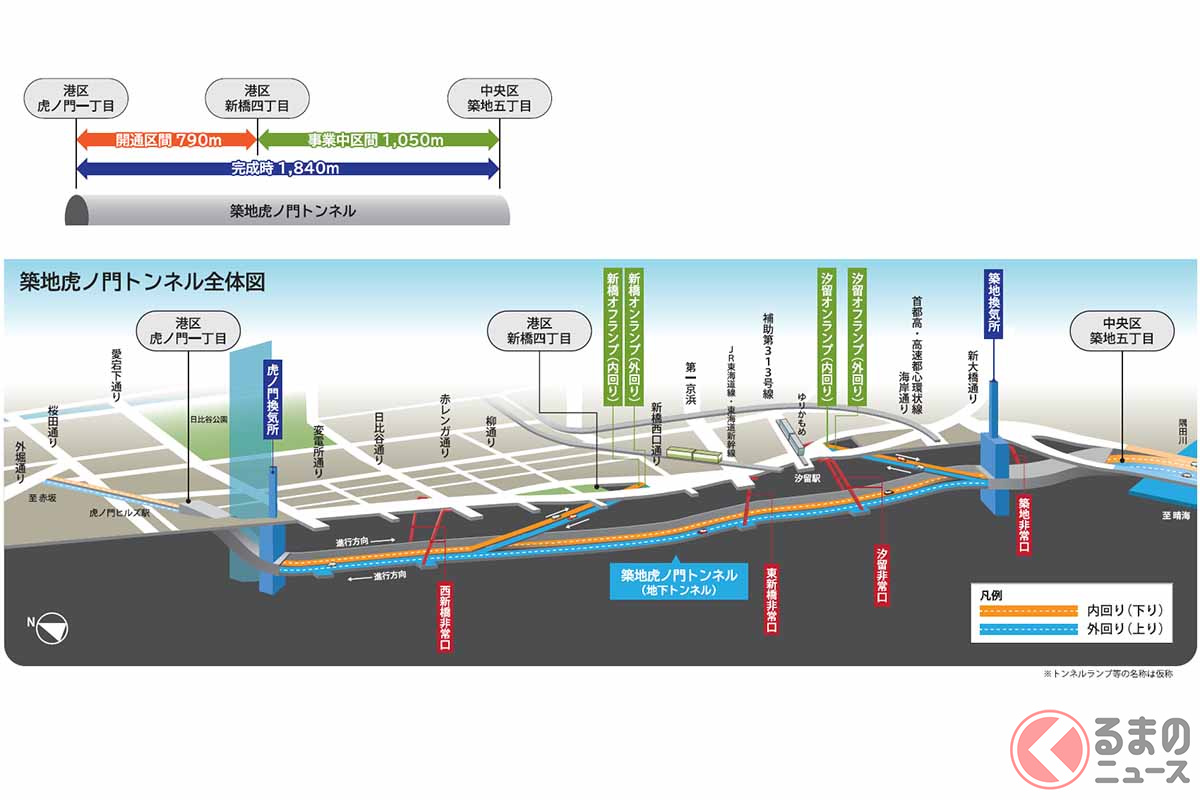 環状2号線が全線開通、完成した築地虎ノ門トンネルを歩く!日経クロステック Active。