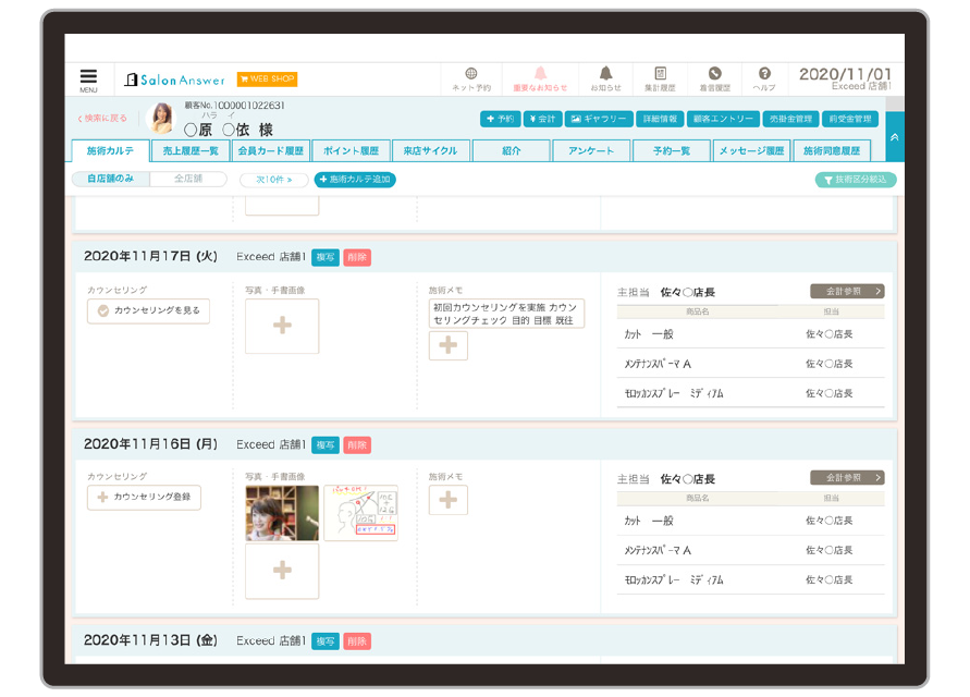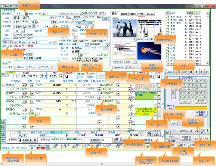 サロン顧客管理・クリニック「サロンシステムPro.21」電子カルテ。