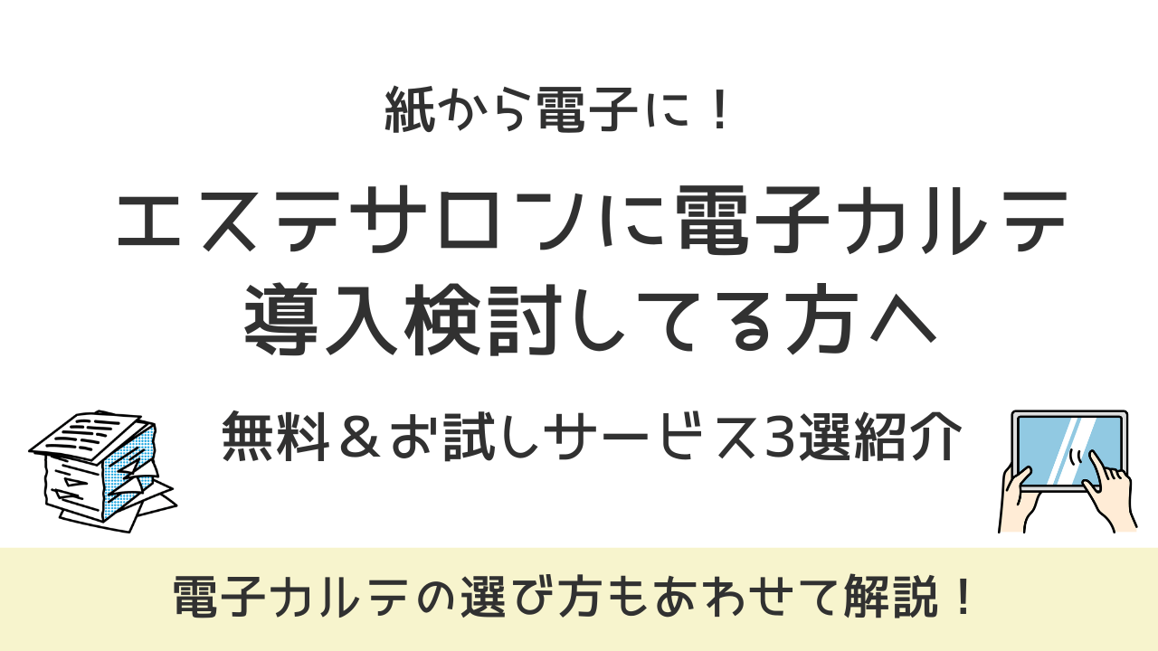 カルテ管理が簡単 エステサロンには電子カルテがおすすめ! エステサロン における業務では、お客様のご希望や来店記録などの情報を残すことが重要で、カウンセリングや施術内容はカルテに記録されます。 しかし、従来の紙カルテ では管理や保存が煩雑なこともあり、カルテ。