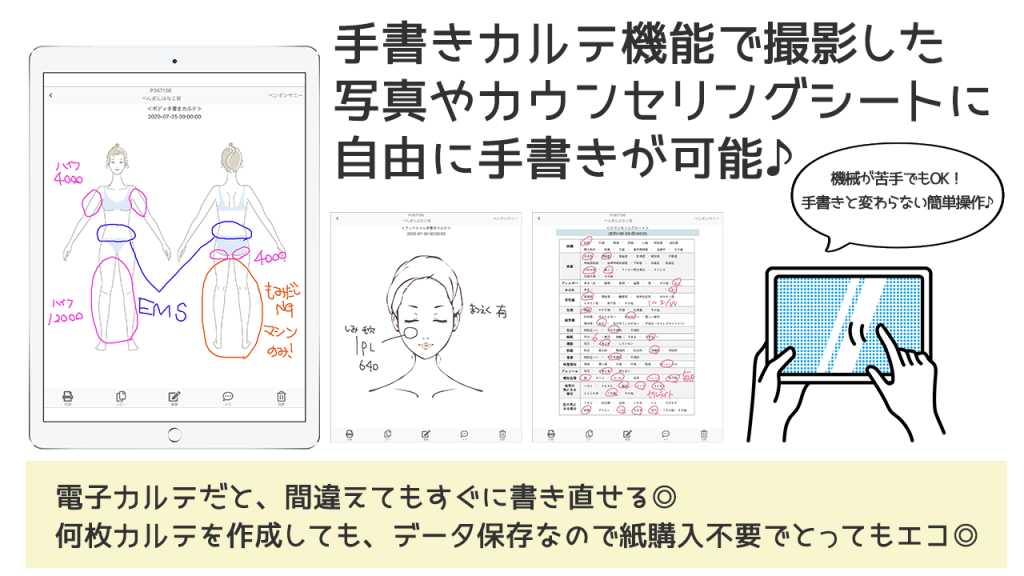 タブレットにフリーハンドで書き込みが出来る電子カルテシステム BEAUTY PALETTENAILEX。