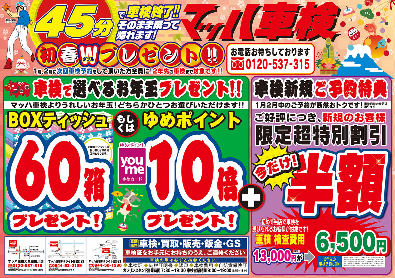 豪華特典が今月ももらえる!!トビマツ自動車。
