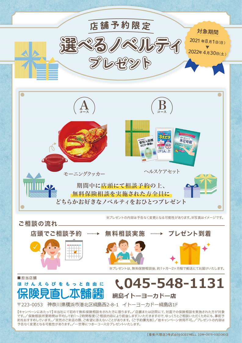 ≪3045≫来店用 QR追加済 選べるノベルティチラシ 来店用 _20231016b綱島もるねっと - 綱島商店街公式サイト。