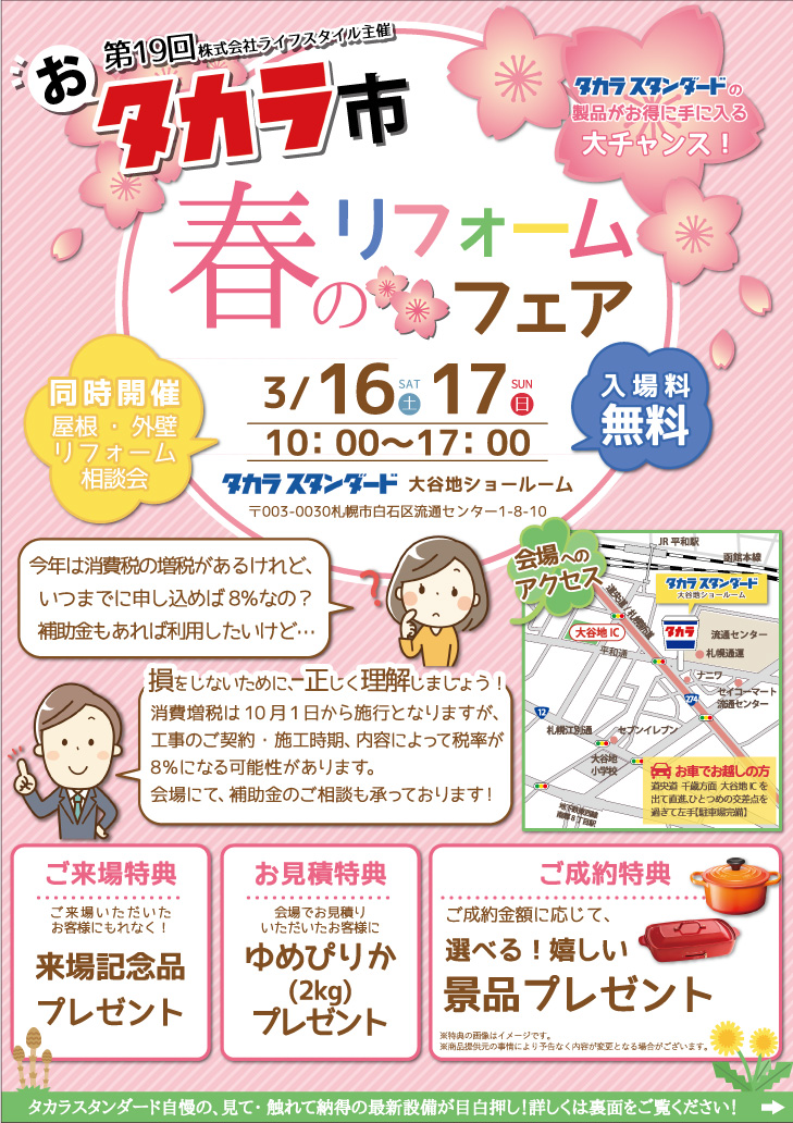第19回 タカラスタンダード「おタカラ市」開催のお知らせリフォーム・リノベーション株式会社ライフスタイル 札幌。