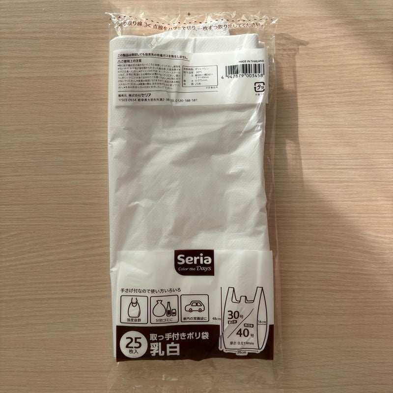 セリアの『取っ手付きポリ袋 乳白 50枚入』がミニサイズのレジ袋で便利!買てみた。