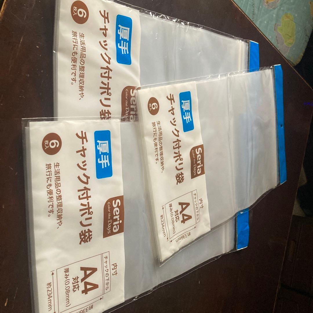 Seria 厚手 チャック付きポリ袋 A4 6枚入り3個。